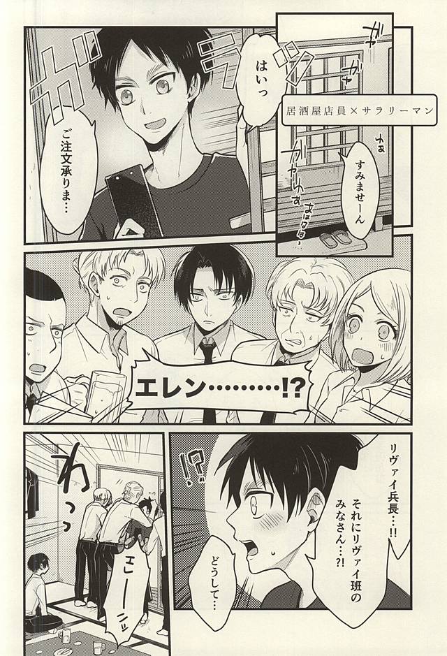 【BL同人誌】居酒屋で客に呼ばれ注文を取りに来たエレンの前にはリヴァイ班の面々がいて再会を果たすwww【進撃の巨人】